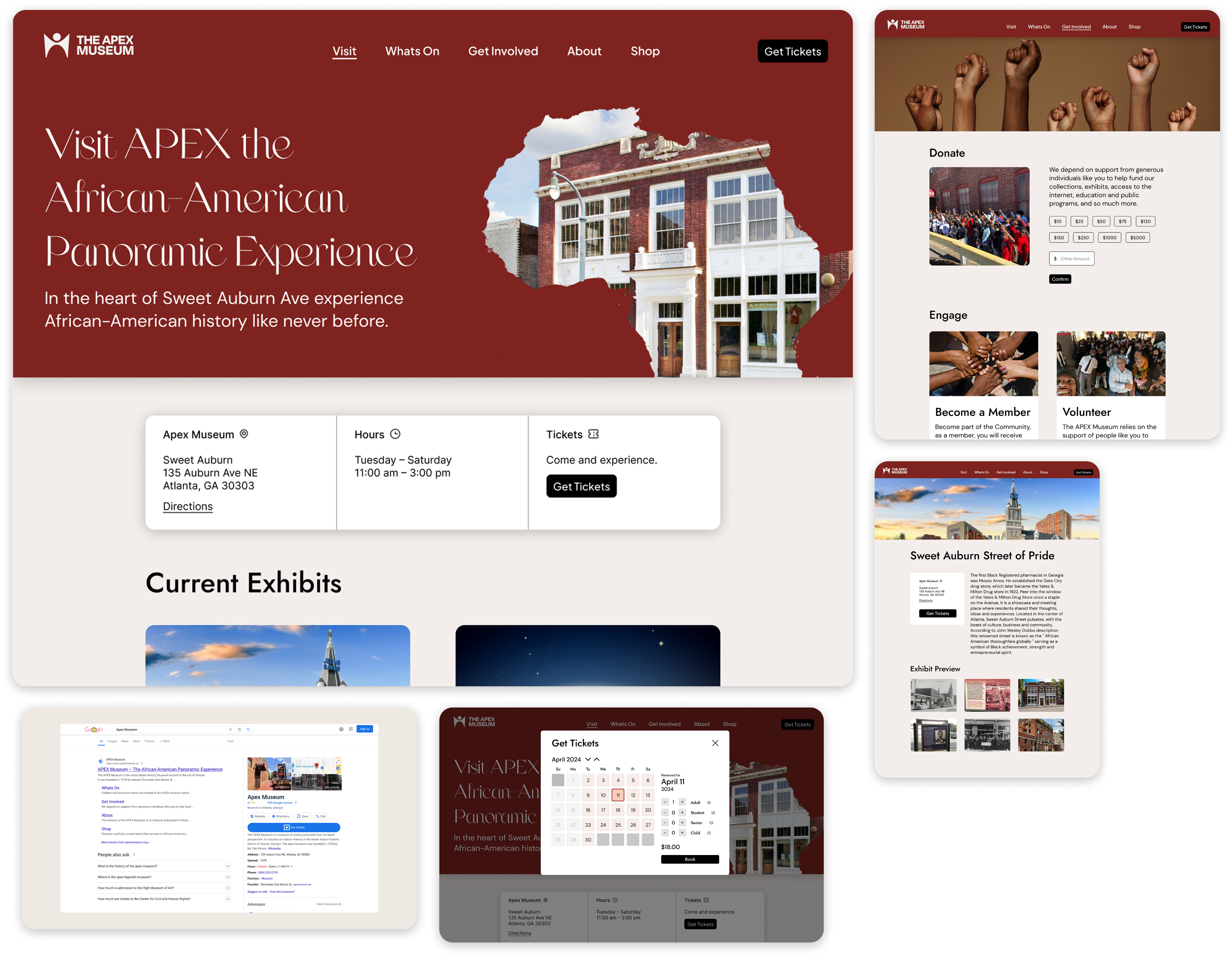 In redesigning the APEX Museum website I streamlined the information architecture while retaining all of the same content, made the ticket purchasing experience more efficient, introduced more appealing aesthetics, and more.