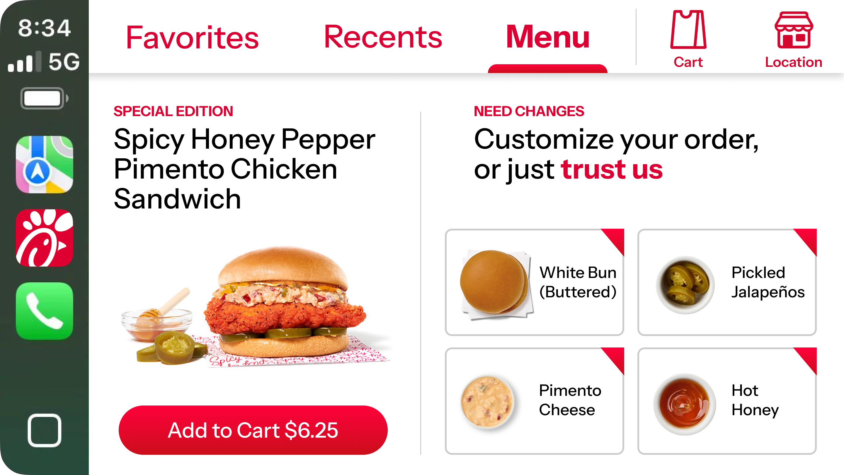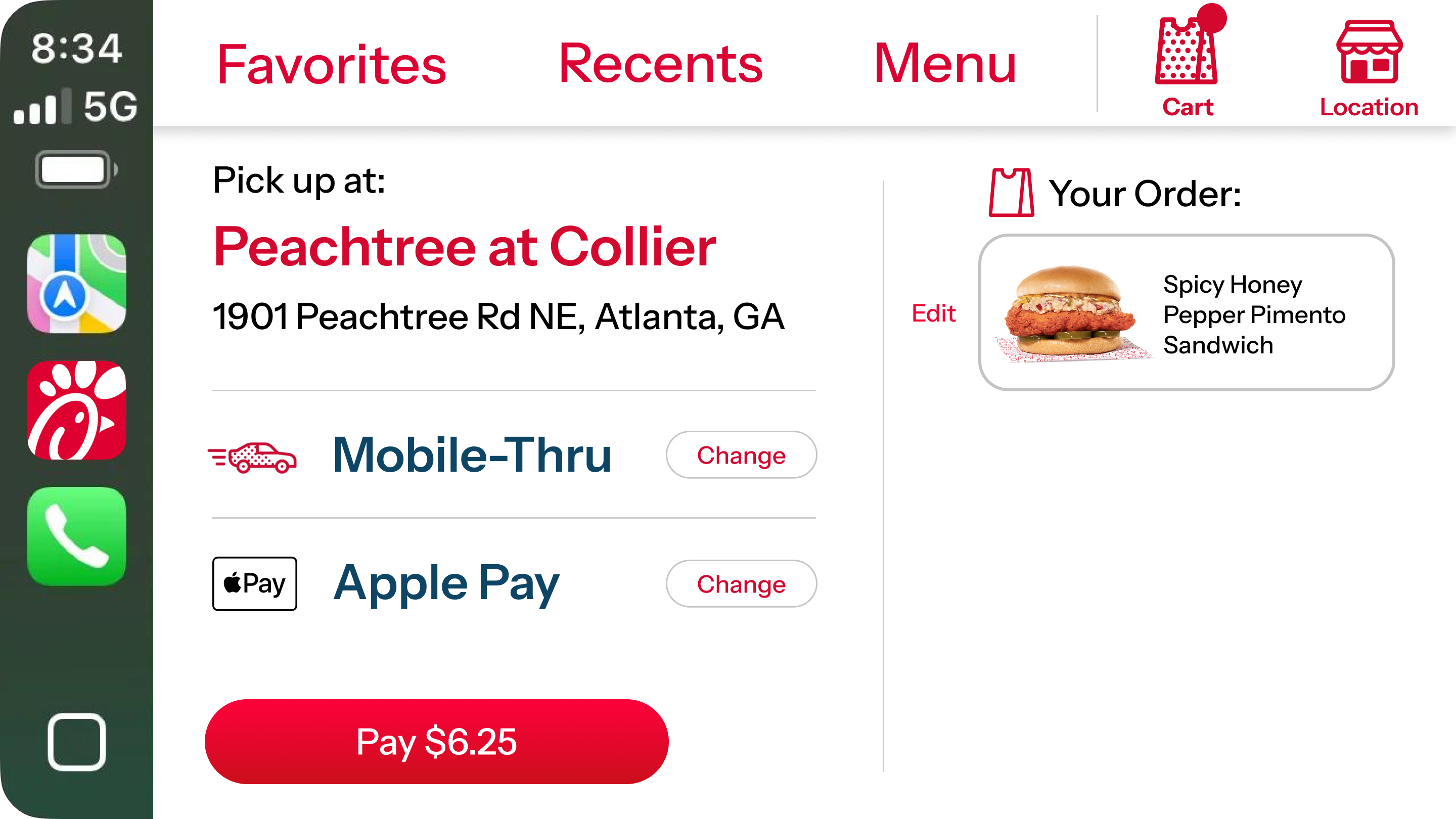 I worked to create a new in car ordering experience for Chirck-fil-A leveraging Apples CarPlay & other technologies in order to create a more seamless and enjoyable ordering experience.