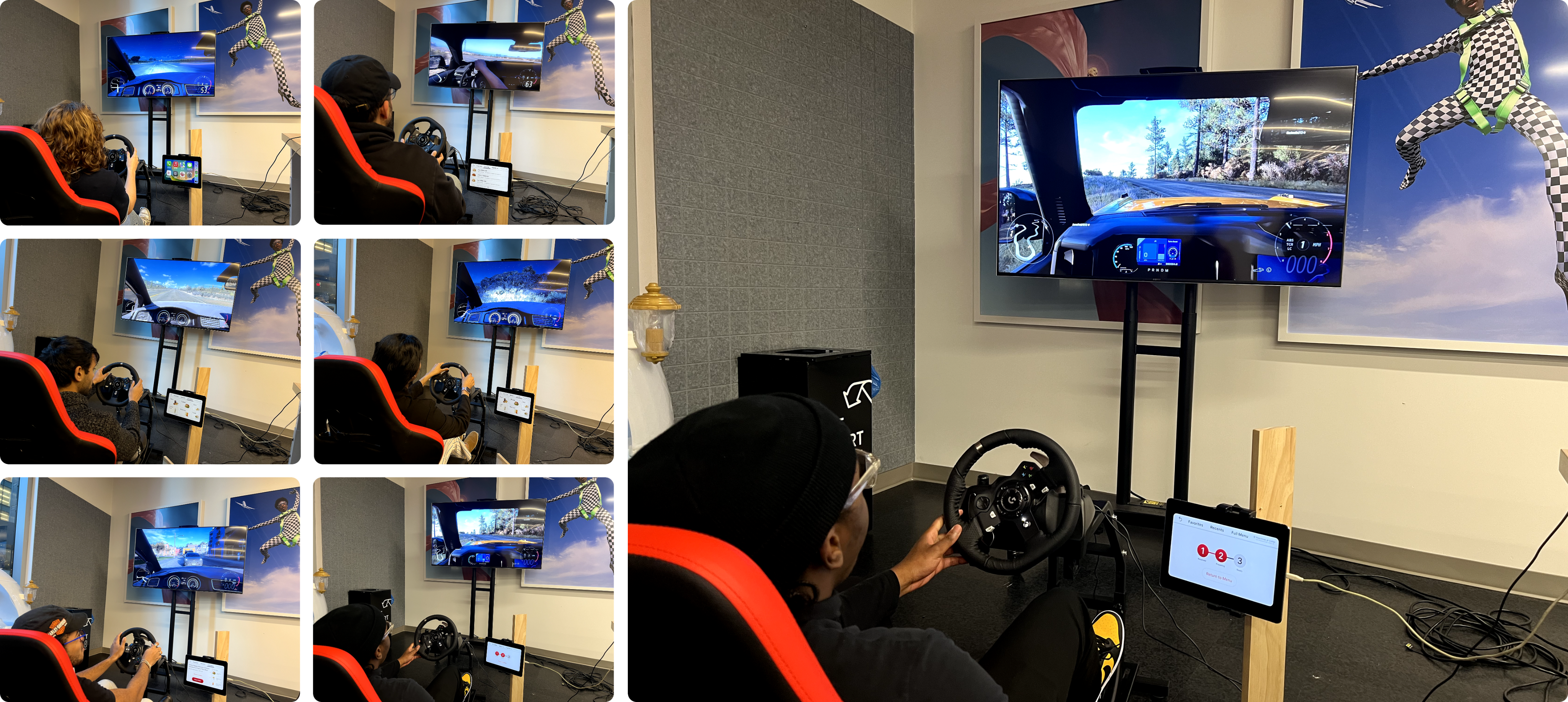 After I had a working prototype I preformed extensive testing utilizing a driving sim inorder to guage peoples comfort interactiing with various UI elements while driving